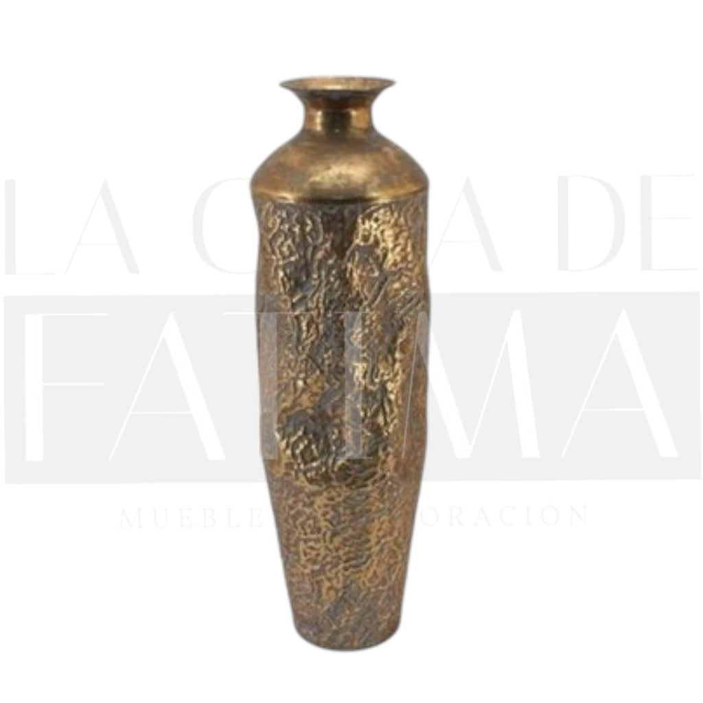 Dale carácter a tus espacios con esta vasija metálica de presencia escultórica y acabado envejecido. Su textura orgánica y silueta estilizada crean un punto focal cálido y elegante, perfecta para vestir una esquina, flanquear un espejo o acompañar un arrimo.