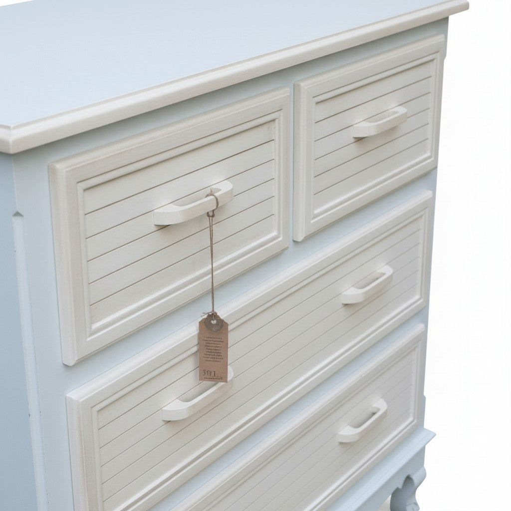 Dale a tu dormitorio un aire clásico y luminoso con esta Cómoda Provenzal de 4 cajones, elaborada en madera de abeto.