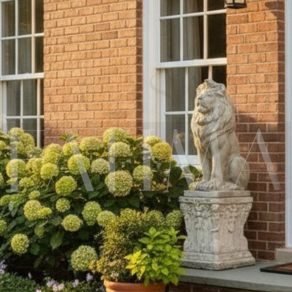 Haz de tu entrada o jardín un lugar con carácter. Esta figura de león, ricamente detallada y con terminación envejecida tipo piedra, aporta presencia, protección simbólica y un toque clásico a cualquier ambiente.