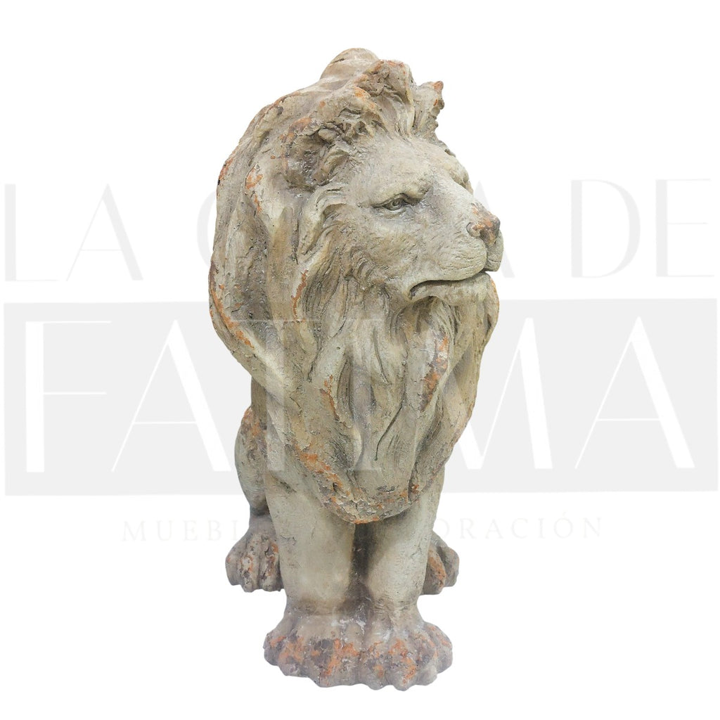 Dale carácter y presencia a tu entrada, terraza o living con este león sentado de acabado envejecido.