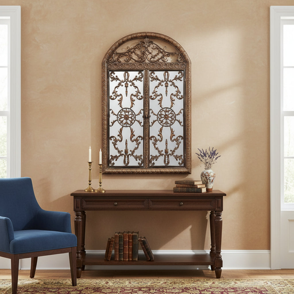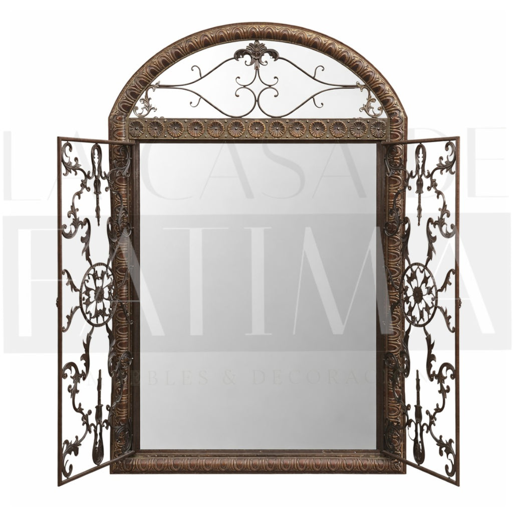 Su marco con puertas metálicas estilo reja aporta textura y presencia, ideal para transformar un hall de entrada, living o dormitorio con un toque elegante y atemporal.
