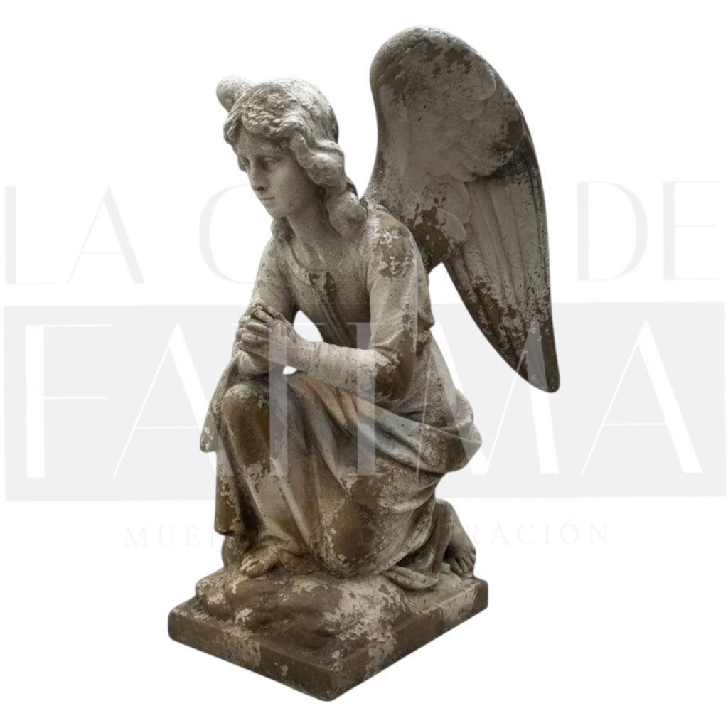 Eleva tus espacios con esta figura de ángel en posición de oración, de estilo clásico y acabado envejecido que aporta calma y un toque sagrado a cualquier ambiente.