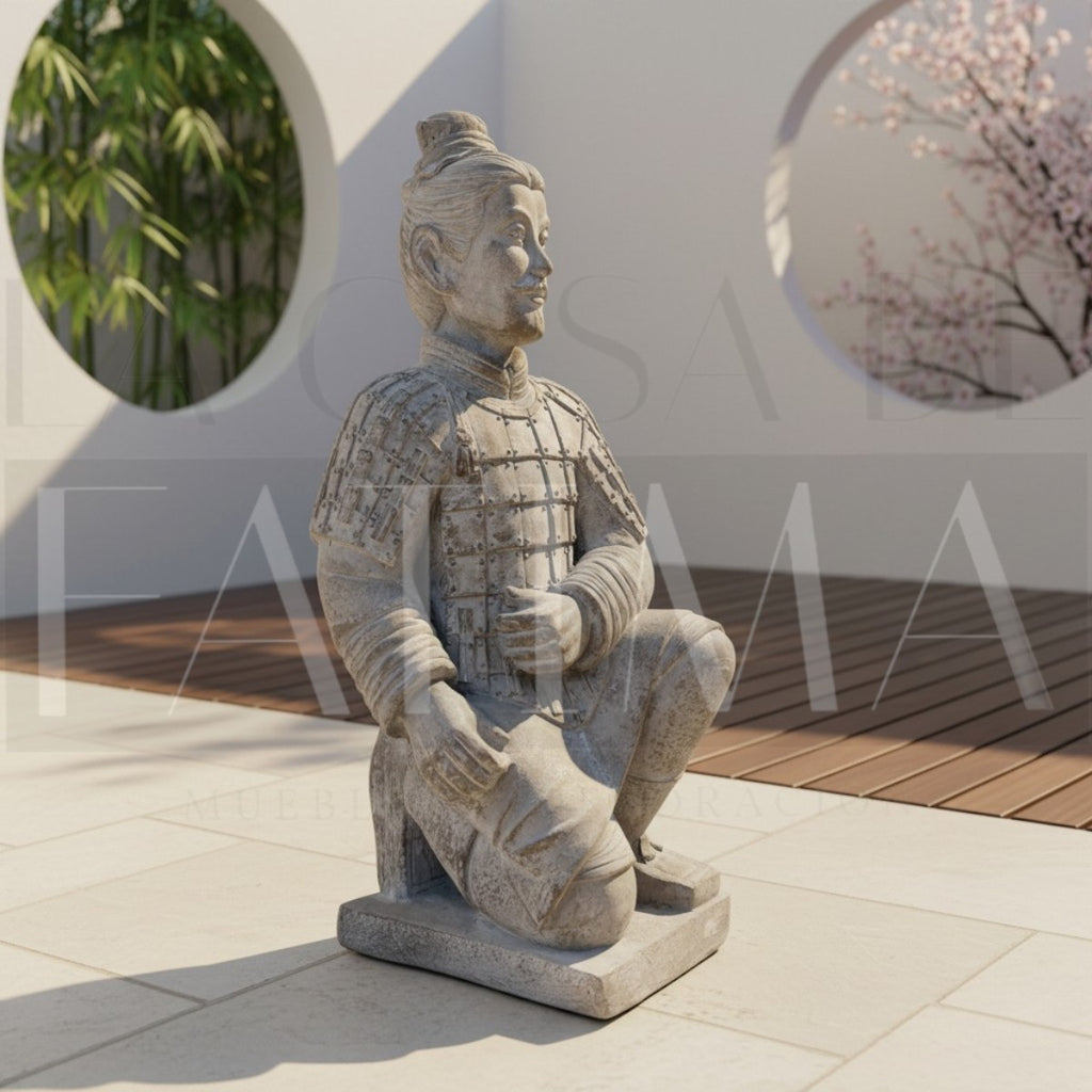 Dale carácter y un aire sofisticado a tus espacios con esta imponente Figura de Guerrero Oriental, una pieza decorativa inspirada en la estética de los antiguos guerreros de Asia.