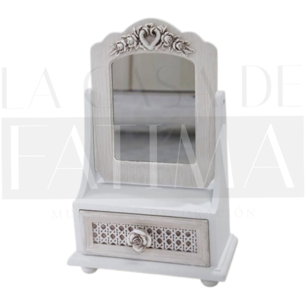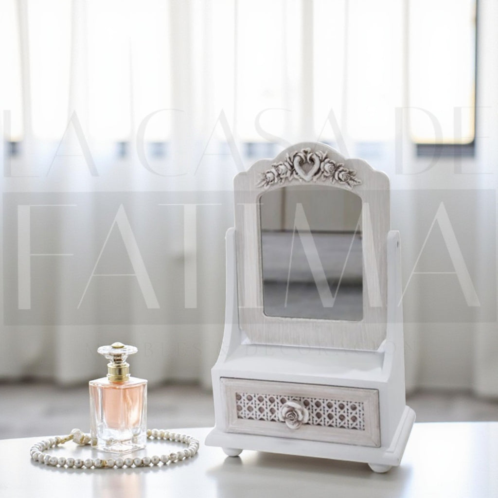 Este joyero vintage con espejo es perfecto para almacenar y exhibir tus joyas de manera elegante.