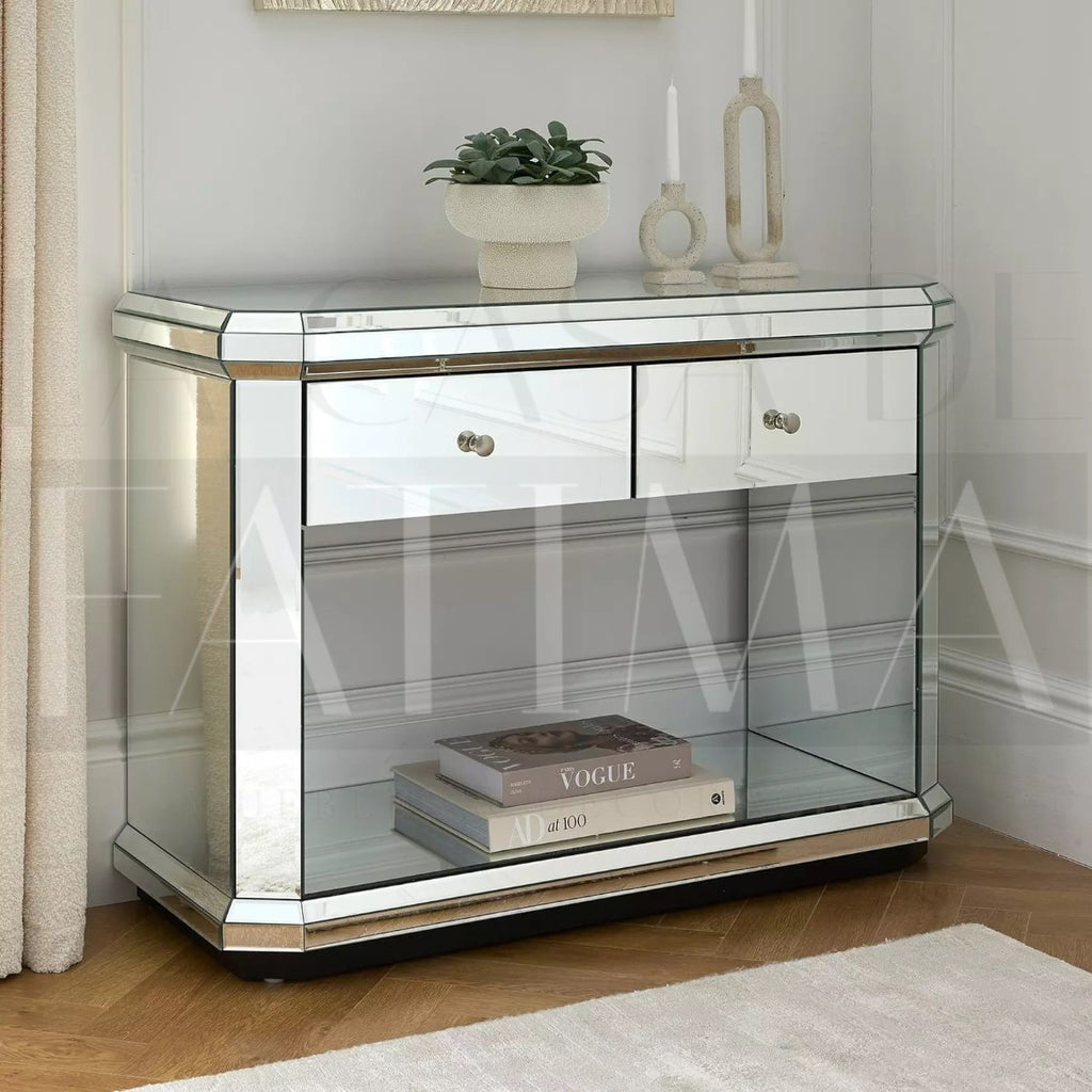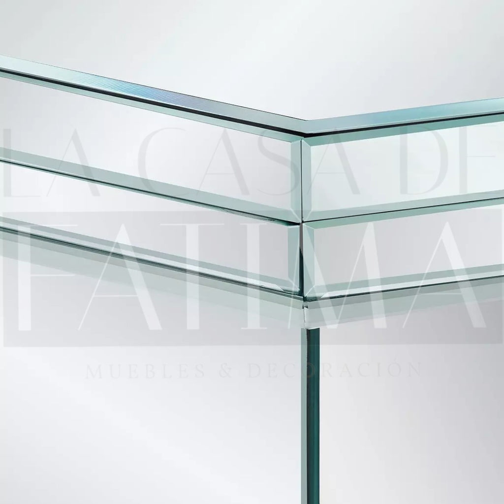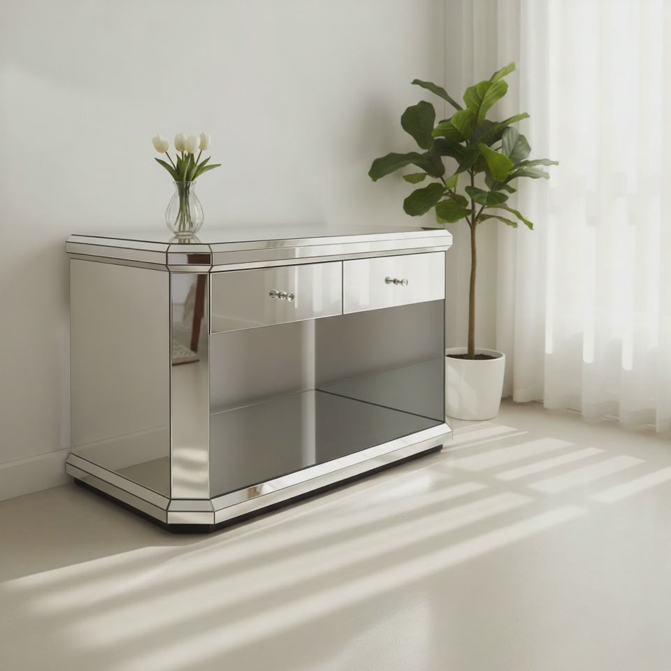 Luz, amplitud y elegancia en una sola pieza. Este arrimo completamente espejado refleja la luz y expande visualmente tus ambientes, logrando una entrada o living más luminoso y sofisticado.